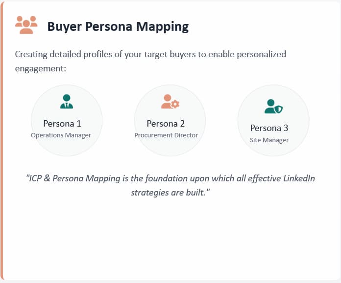 We don't just optimize profiles. We map 2–4 buyer personas to ensure your headline and content pre-sell your expertise before you ever send a message.