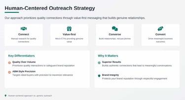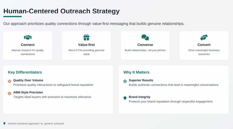 Value-First Messaging: No 'pitch slapping.' We use micro-CTAs that start genuine conversations.