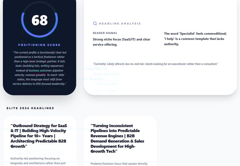 A scorecard of your profile (clarity, credibility, conversion)
