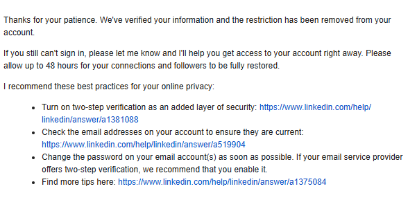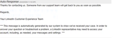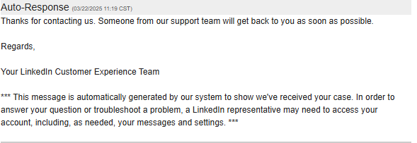 You can also message the LinkedIn Help team on X at @LinkedInHelp. Response times there can vary quite a bit, but it puts your issue in a public facing queue which can sometimes help things move along a bit faster.