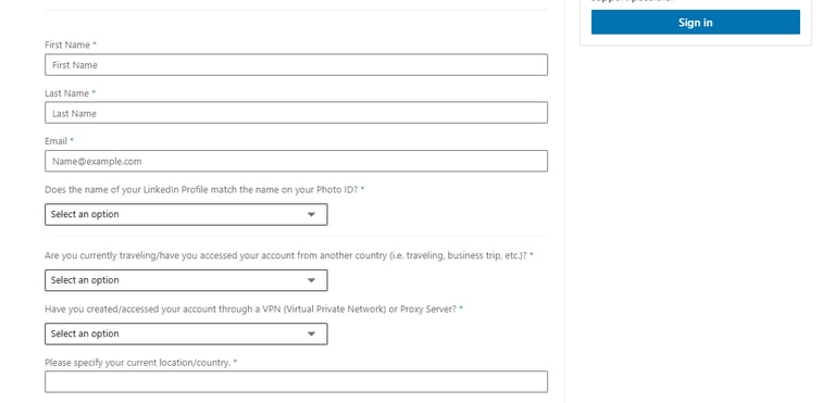 Compare your profile name to your legal name on your ID. If you use a shortened name or a nickname on LinkedIn, make a note of it and mention the difference clearly in your support message.