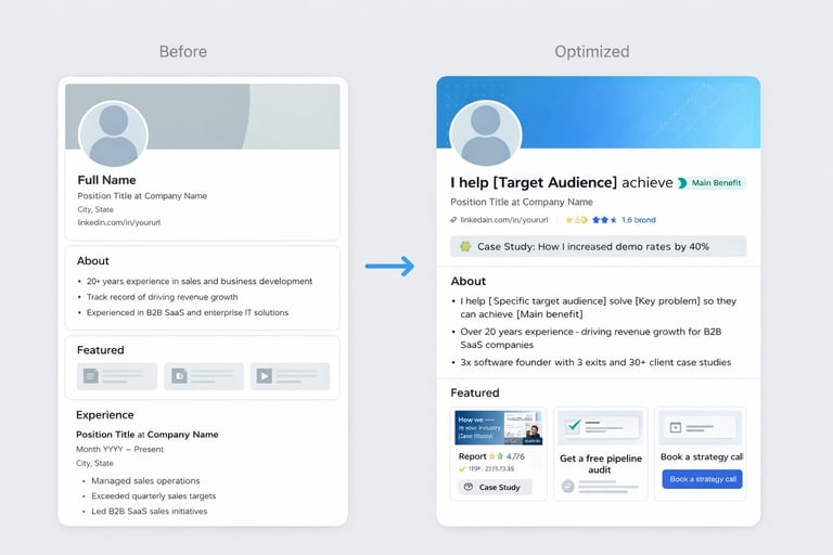 I clarify who you help, the outcome you deliver, and what makes you different. Then I structure your profile so the right buyers understand your value fast.