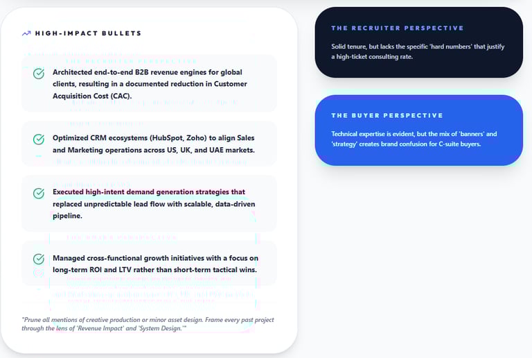 ✔ Experience Section Clean-up: Rewriting past roles to build current authority.