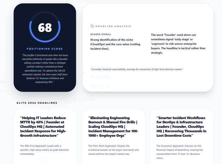✔ Headline & Bio Rewrite: Positioning you as an expert using outcomes & keywords.